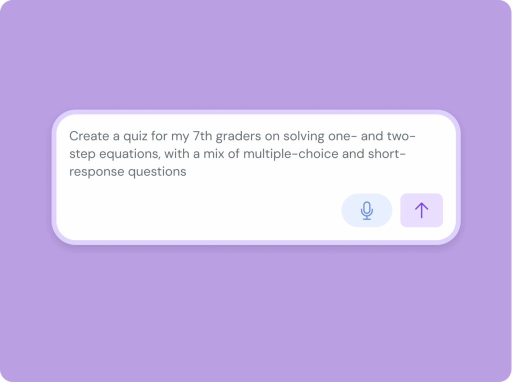 Need a quick quiz or a unit test? Generate formative and summative assessments in a flash, complete with well-crafted questions and answer keys. Specify the topic, standard, or skill you want to assess, and your Colleague will produce relevant multiple-choice questions, short response prompts, or other question types as needed. All items are designed to be standards-aligned and appropriate for the grade level you’re teaching.