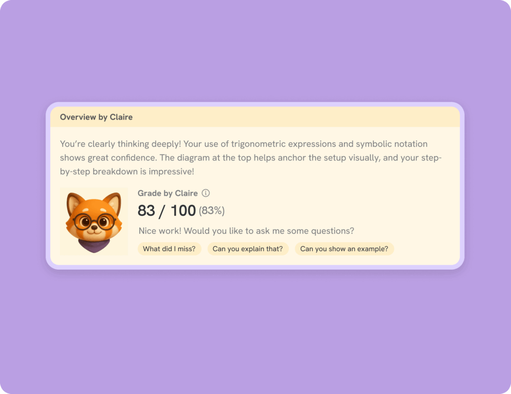 Encourage creativity and reduce barriers by accepting student work in any form – whether it’s a traditional typed document, a Google Slides presentation, or even a photo of a handwritten math solution on a sticky note. Colleague’s AI is smart enough to read and understand various submission types (yes, it can decipher handwriting and text from images). Use AI for assessment to enable digital grading.