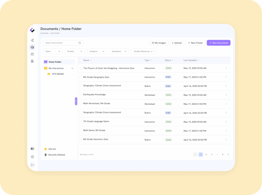 With Colleague AI, you have unlimited space to upload curriculum and instructional materials to your organization-level library. All educators from your organization will have access to the library. With the Colleague AI tools, educators can adapt standardized materials to their own classrooms for their students.