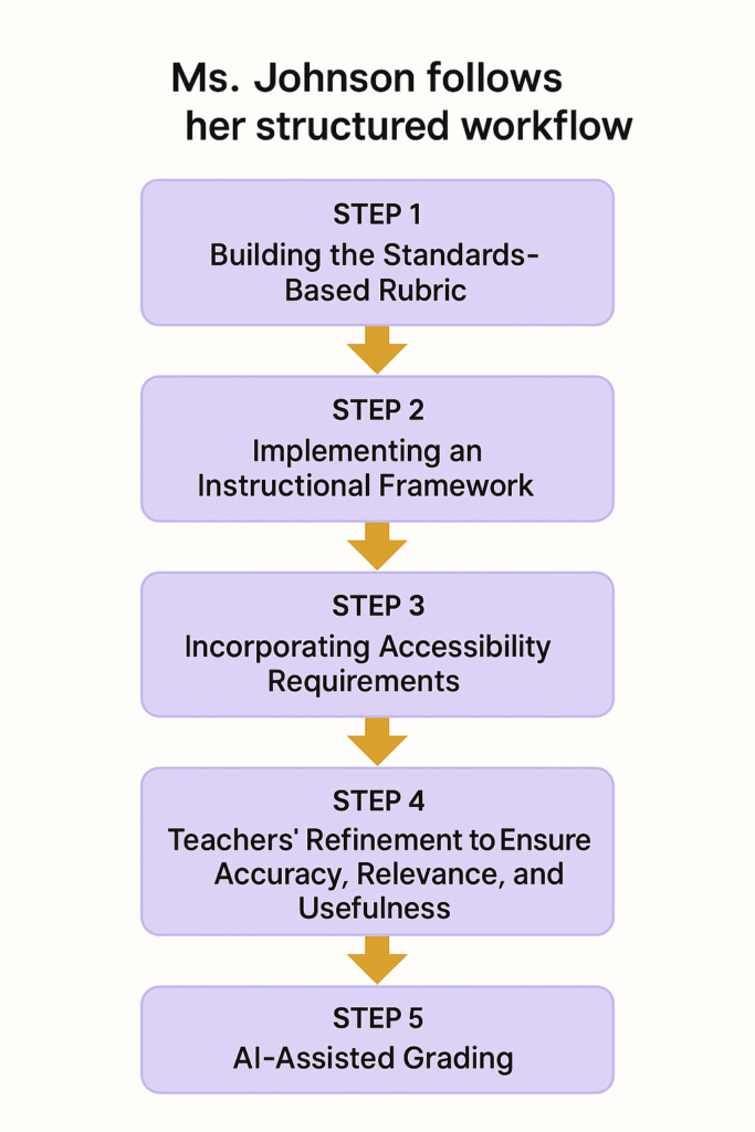 Caption: Ms. Johnson’s Workflow of AI-Assisted Rubric Generation and Grading