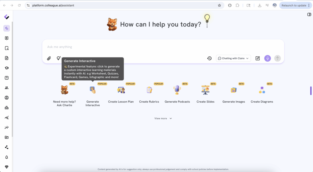 Users can easily generate highly engaging learning materials such worksheets with help of Colleague AI